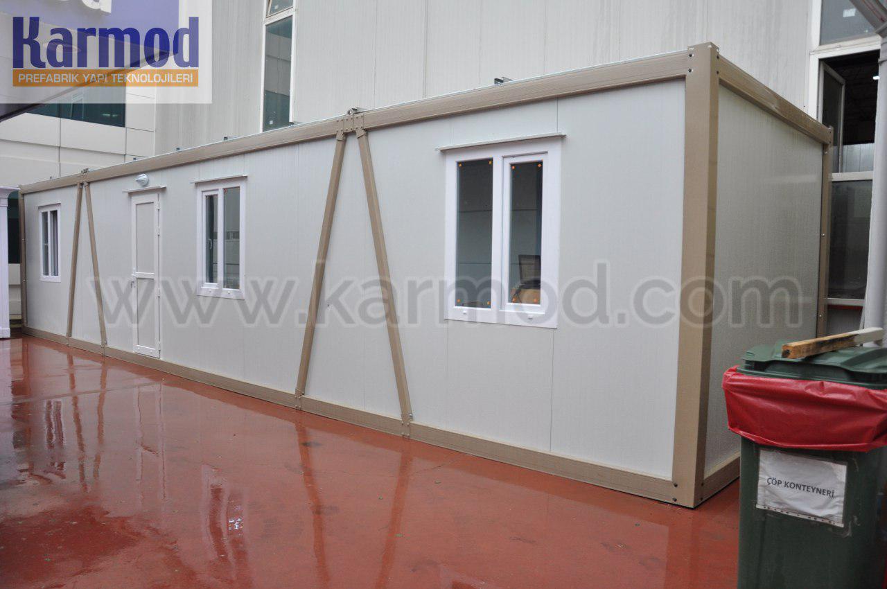 Container house (9x3 m; 27 sq. m.): two bedrooms, bathroom and shower. Specially insulated with mineral wool for cold climates. Modular living containers from Turkish firms Karmod resolve issues related to temporary or long-term accommodation. Modular container houses are quickly erected, mobile, economical and reliable for all weather conditions, and most importantly a completely finished house for use. Price includes system wiring, water supply, toilets, Sewerage system. Design convertible type for compact storage or transportation.